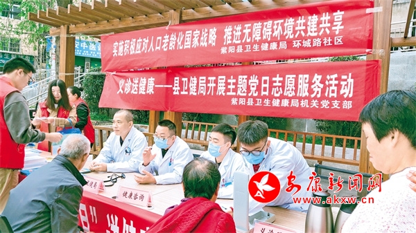 紫陽(yáng)縣城關(guān)鎮(zhèn)環(huán)城路社區(qū)與紫陽(yáng)縣衛(wèi)健局聯(lián)合開(kāi)展“義診送健康”主題黨日活動(dòng)。儲(chǔ)茂銀 攝