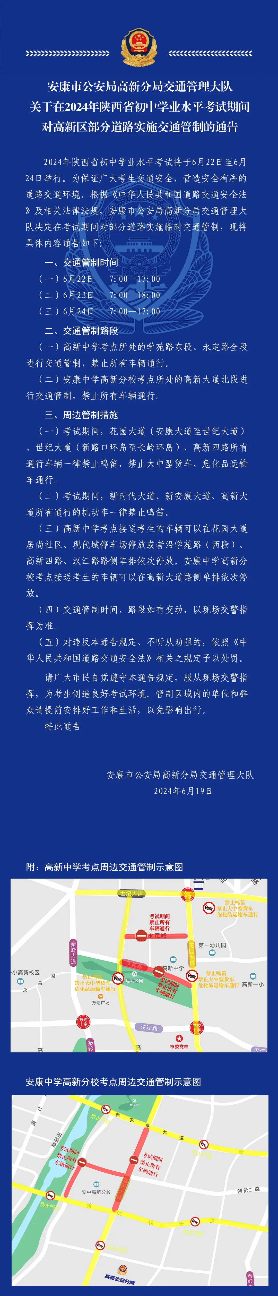 2024年陜西省初中學(xué)業(yè)水平考試期間 安康高新區(qū)部分道路實(shí)施交通管制