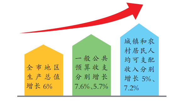 地區(qū)生產(chǎn)總值增長5.5%,固定資產(chǎn)投資增長5.5%,規(guī)上工業(yè)增加值增長10%,社會消費品零售總額增長6%,一般公共預算收入增長6%,城鎮(zhèn)和農(nóng)村居民人均可支配收入增長5%、6%,城鎮(zhèn)新增就業(yè)1.9萬人,城鎮(zhèn)調(diào)查失業(yè)率5.5%以內(nèi)。