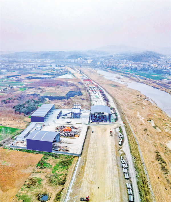 漢濱段預(yù)制梁場施工現(xiàn)場