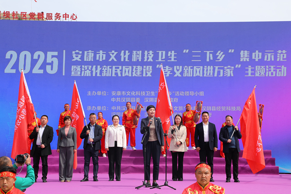 本網(wǎng)訊(通訊員 賈學(xué)林)文化惠民添活力,孝義新風(fēng)潤安康。3月18日,2025年安康市文化科技衛(wèi)生“三下鄉(xiāng)”集中示范暨深化新民風(fēng)建設(shè)“孝義新風(fēng)進萬家”主題活動在漢陰縣澗池鎮(zhèn)舉行。市委常委、宣傳部部長陳蓮宣布活動啟動并向“三下鄉(xiāng)”服務(wù)小分隊授旗。“三下鄉(xiāng)”市級成員單位、漢陰縣有關(guān)負責同志參加活動。