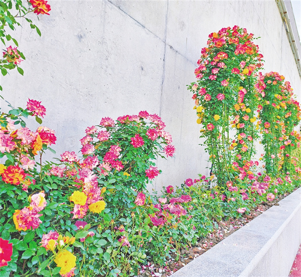 西壩防洪堤下月季長廊 實(shí)習(xí)記者 張晶晶 攝