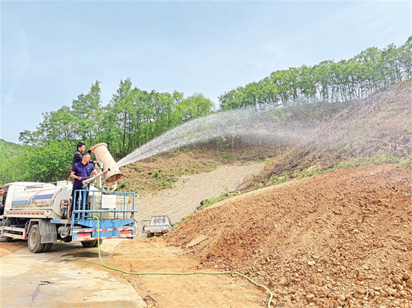 4月25日,平利縣長安鎮(zhèn)金沙河村安排運(yùn)輸投送農(nóng)業(yè)生產(chǎn)用水,對(duì)500畝烤煙幼苗進(jìn)行灌溉。胡鈴鈴 攝
