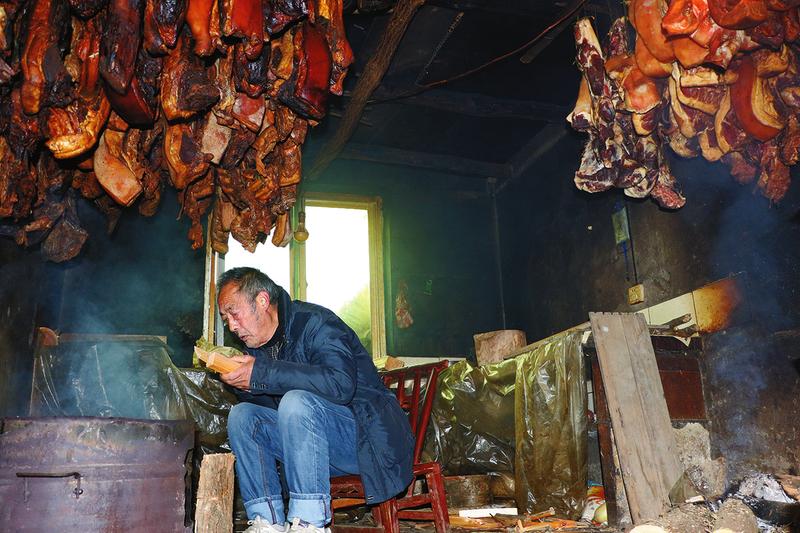 嚴發(fā)金正往爐子里添柴熏臘肉。 張斌峰攝正在裝箱“紫陽故事”的王華和董會兩口子。 張權(quán)偉攝臨近春節(jié),不斷有新的網(wǎng)上訂單,林紅梅很是忙碌。 張權(quán)偉攝王華的……