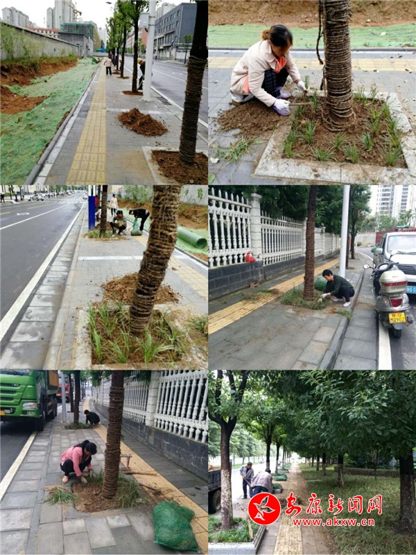 轄區(qū)行道樹(shù)樹(shù)池補(bǔ)植麥冬草……