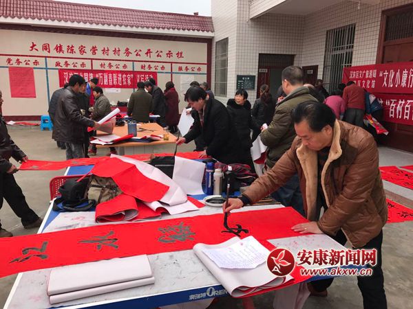 安康新聞網訊(通訊員 劉瀟 楊峰)1月8日,大同鎮(zhèn)陳家營村熱鬧非凡。2017年“萬副春聯進農家”活動在這里舉行,在寒冬臘月里為全鎮(zhèn)人民帶來了濃濃暖意。春聯書寫……