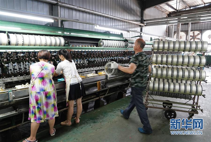 7月19日,工人在石泉縣陜西天成絲業(yè)有限公司生產(chǎn)車間內(nèi)繅絲。 新華社記者 邵瑞 攝