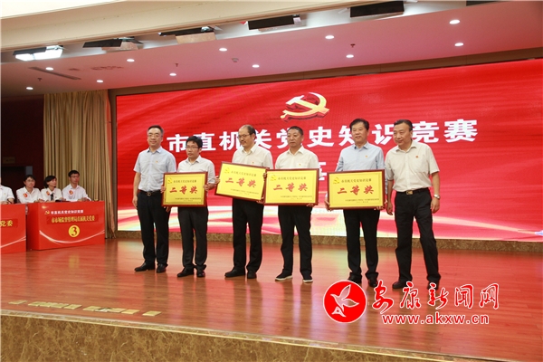 決賽分為個(gè)人必答題、團(tuán)隊(duì)共答題、搶答題、風(fēng)險(xiǎn)題四個(gè)環(huán)節(jié),通過抽簽的方式確定比賽座次。比賽的過程中,還穿插了觀眾答題互動(dòng)環(huán)節(jié)。經(jīng)過緊張的四個(gè)環(huán)節(jié)比拼,最終,市委辦機(jī)關(guān)黨委代表隊(duì)、市委黨校機(jī)關(guān)黨委代表隊(duì)榮獲一等獎(jiǎng),市市場監(jiān)督管理局直屬機(jī)關(guān)黨委代表隊(duì)、市住建局直屬機(jī)關(guān)黨委代表隊(duì)、市政府辦機(jī)關(guān)黨委代表隊(duì)、市委政研室機(jī)關(guān)黨支部代表隊(duì)獲得二等獎(jiǎng)。