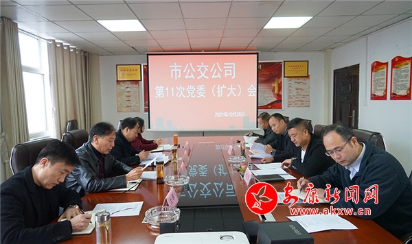 本網(wǎng)訊(通訊員 成忠旭)10月28日,市公交公司召開(kāi)第十一次黨委(擴(kuò)大)會(huì),認(rèn)真學(xué)習(xí)習(xí)近平總書(shū)記來(lái)陜考察重要講話重要指示精神,研究貫徹落實(shí)措施。領(lǐng)導(dǎo)班子成員、有關(guān)部門負(fù)責(zé)人參加會(huì)議。