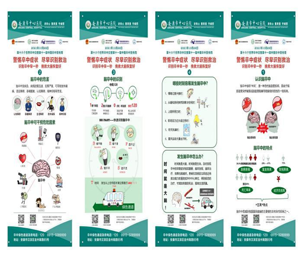 是根據(jù)國(guó)家衛(wèi)健委腦防委定義的宣傳活動(dòng)主題,制作了 4 幅宣傳展板、1000份宣傳折頁(yè)和宣傳橫幅;規(guī)劃籌備拍攝一部“安康市中心醫(yī)院卒中中心宣傳片”;作為國(guó)家高級(jí)卒中中心和安康市卒中聯(lián)盟醫(yī)院,積極引導(dǎo)我市20多家醫(yī)院開(kāi)展“世界卒中日”宣傳活動(dòng)。