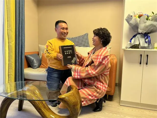 立冬這天,富華裝飾公司的周靜云、張培等人把王庭德迎進(jìn)溫暖的新居,向他移交了裝飾溫馨的新房。王庭德為了感恩,向富華裝飾公司贈送了“關(guān)愛有致,親如家人“的匾牌。