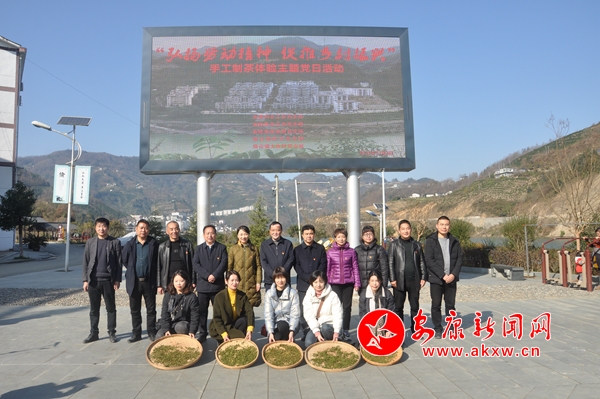 活動(dòng)中,殺青、揉捻、定型,鮮嫩的茶葉在黨員干部手掌和鍋中上下翻騰,左右揉搓。經(jīng)過(guò)近兩個(gè)小時(shí)的耐心制作,成品紫陽(yáng)綠茶新鮮出鍋,空氣中散發(fā)出濃濃茶香。