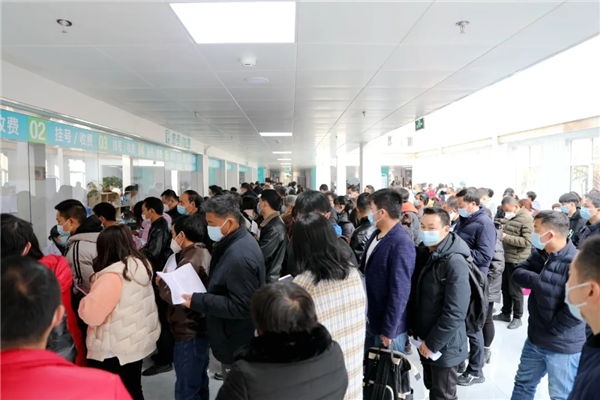 江南院區(qū)門(mén)診樓上午繁忙的景象