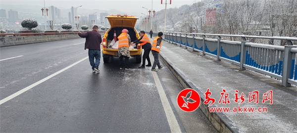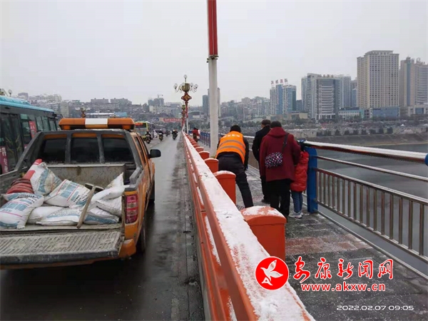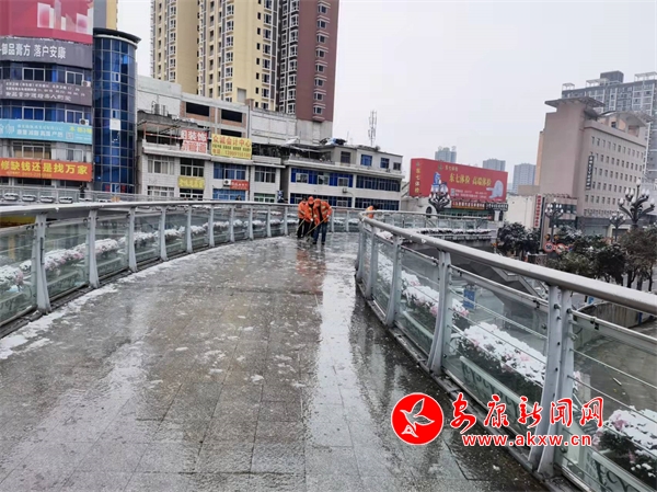 據(jù)了解,7日清晨,安康市市政園林處共投入人力40余人,融雪劑3噸,車輛10臺,對城區(qū)雷神殿、馬坎天橋、漢江一橋、三橋、南環(huán)干道陳家溝大橋及部分公園集中開展除雪融冰工作。
