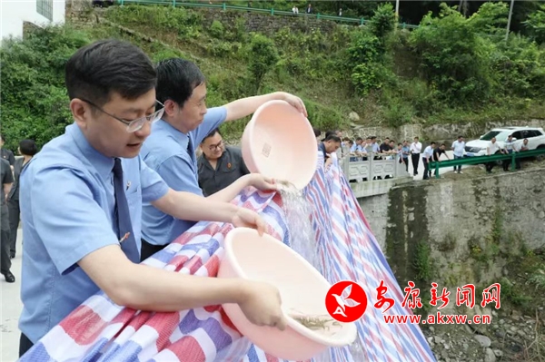 6月5日,在剛剛過去的第51個世界環(huán)境日,安康鐵檢院、安鐵法院、安康市農(nóng)業(yè)農(nóng)村局等單位在紫陽聯(lián)合開展增殖放流活動,用三名被告繳納的野生動物資源損失費購買錢魚魚苗10000余尾,投放在案發(fā)地水域,及時修復(fù)因犯罪行為而受損的任河國家級保護區(qū)的生態(tài)環(huán)境。