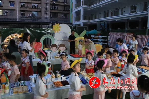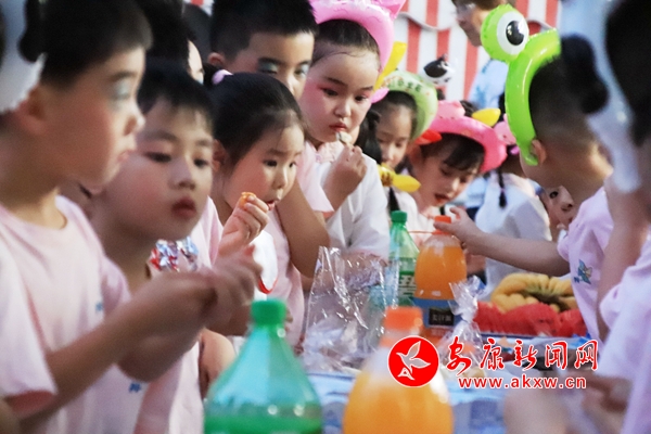一段溫馨的共話離別。演出結(jié)束后,幼兒園給小朋友們準(zhǔn)備了各種美食,在五彩斑斕的夜光下自選幾種美食,好朋友們在一起,品嘗美食,聊聊幼兒園開心的事情,談?wù)勏矚g的東西。