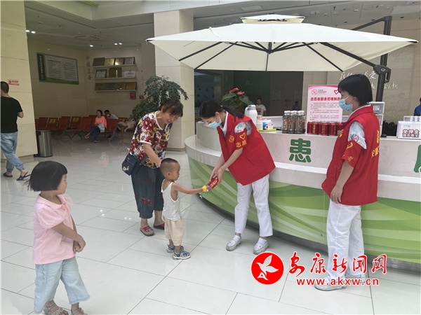 便民舉措送清涼。為更好地服務(wù)就醫(yī)群眾,醫(yī)院開展志愿者服務(wù)活動,為服務(wù)對象提供遮陽、送清涼、門診延伸、道路引導(dǎo)、就診咨詢等志愿服務(wù)。在門診大廳為前來就診的患者及陪同人員免費(fèi)提供降溫飲品。該院的相關(guān)負(fù)責(zé)人說:“天氣炎熱,患者和家屬遠(yuǎn)路趕來,容易產(chǎn)生急躁情緒,我們更應(yīng)該把服務(wù)做得精細(xì)一些,有利于醫(yī)患溝通,也有利于為患者更好地服務(wù)。當(dāng)我們把飲品送到患者及家屬手中時,不僅捎去了夏日的清涼,還幫助其緩解焦慮的心情”。