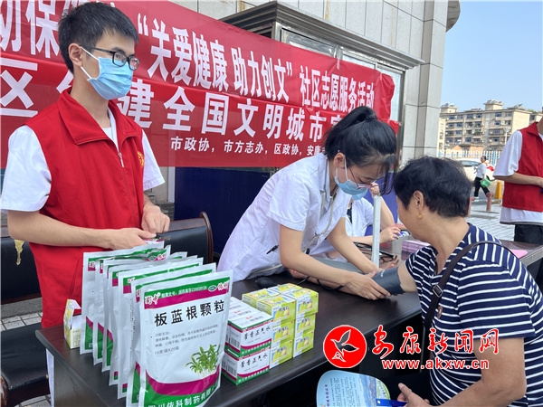 活動現(xiàn)場,醫(yī)務人員為社區(qū)居民聽診、測量血壓,耐心地詢問他們的身體狀況并進行健康指導,免費發(fā)放了板藍根顆粒、藿香正氣水等常用藥品。向前來義診的居民發(fā)放健康宣傳資料,講解了高血壓、糖尿病、婦女兒童健康保健知識以及定期檢查身體的重要性,倡導居民積極樂觀的生活態(tài)度,養(yǎng)成健康生活習慣。