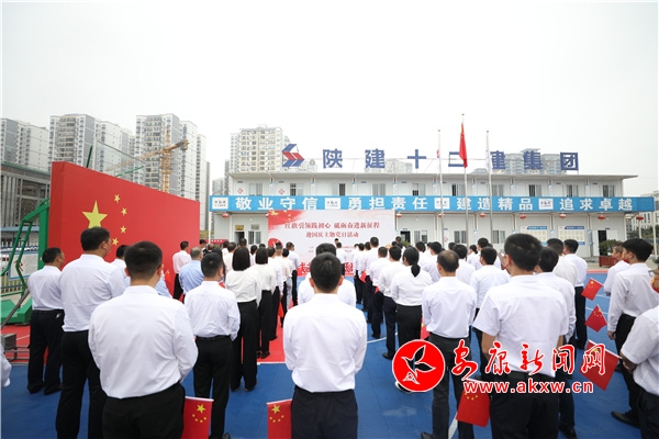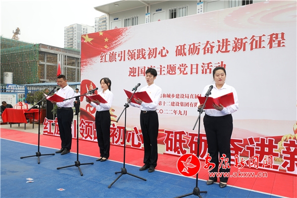 上午9時,活動在莊嚴的升旗儀式中拉開序幕,伴隨著《義勇軍進行曲》慷慨激昂的旋律,鮮艷的五星紅旗冉冉升起。在場全體人員面向國旗行注目禮,齊唱國歌,共同祝福偉大祖國更加繁榮昌盛。升旗儀式結束后,在活動現(xiàn)場,開展了紅色朗誦《我的祖國》,市住建局向陜建十二建集團捐贈“紅色”書籍。同時,市住建局工作人員進行了《建設工程項目管理規(guī)范》《建筑施工現(xiàn)場環(huán)境與衛(wèi)生標準》《 建筑施工高處作業(yè)安全技術規(guī)范》等城市建設及建筑行業(yè)規(guī)范宣講;顒幼詈螅w人員合唱《我和我的祖國》,激昂的歌聲將活動推向了高潮。