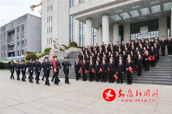 上午8時(shí),升旗儀式正式開始,全體干警在辦公樓前整齊列隊(duì)。司法警察組成的國(guó)旗護(hù)衛(wèi)隊(duì)英姿颯爽,邁著堅(jiān)定而整齊的步伐,護(hù)衛(wèi)五星紅旗行至升旗臺(tái)。鮮艷的五星紅旗伴隨著雄壯的國(guó)歌聲冉冉升起,迎風(fēng)飄揚(yáng)。全院干警肅穆而立,滿懷崇敬之情向國(guó)旗行注目禮,表達(dá)對(duì)祖國(guó)的無限忠誠(chéng)與熱愛和忠誠(chéng)履行審判職責(zé)的堅(jiān)定信念。