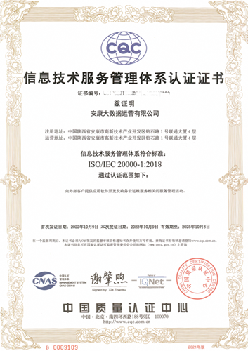 近日,經(jīng)過了全面、專業(yè)、細(xì)致的審核,安康大數(shù)據(jù)公司成功獲得信息技術(shù)服務(wù)管理體系(ISO/IEC20000-1:2018)與信息安全管理體系(ISO/IEC27001:2013)認(rèn)證證書。