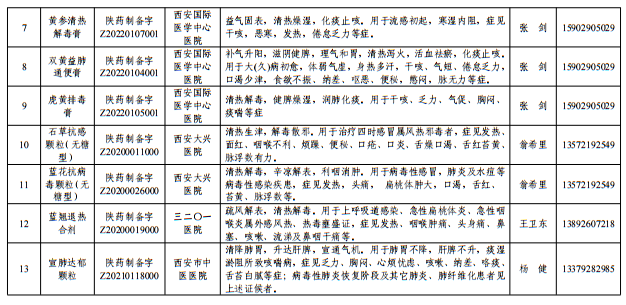 一是全市具有相關(guān)調(diào)劑品種使用需求且符合資質(zhì)的醫(yī)療機(jī)構(gòu)均可從《陜西省防疫用中藥制劑目錄及聯(lián)系方式》(詳見附件)中的醫(yī)療機(jī)構(gòu)購進(jìn)目錄中的13種制劑產(chǎn)品,調(diào)劑使用時(shí)間從發(fā)文之日起至 2023年6月30日。