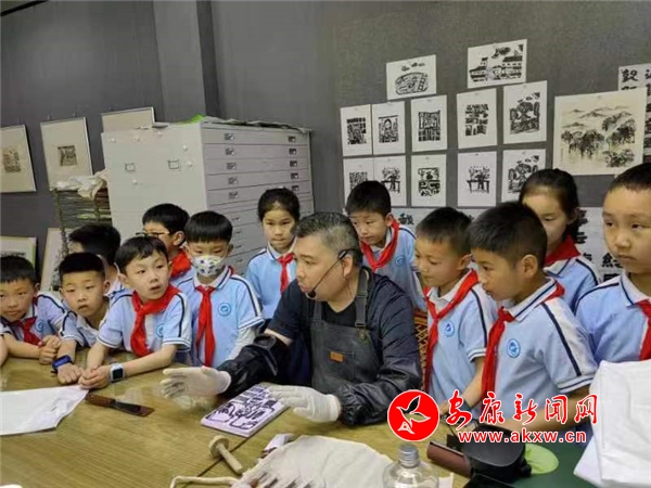 師生們?cè)谌核囸^老師帶領(lǐng)下觀摩了“藝橋飛架童心筑夢(mèng)”蘇陜?cè)ト∪厣賰喊娈嬚,一幅幅精品佳作,表現(xiàn)出童心、童趣,弘揚(yáng)著中華優(yōu)秀傳統(tǒng)文化,培育和踐行社會(huì)主義核心價(jià)值觀,傳遞著新時(shí)代少年兒童心中的美好心愿和遠(yuǎn)大夢(mèng)想,讓同學(xué)們心中種下了一顆藝術(shù)的種子。緊接著同學(xué)們來(lái)到版畫工坊,實(shí)地參觀專業(yè)老師版畫制作過(guò)程,從專業(yè)老師的制作中,明白了一張版畫是如何誕生的。