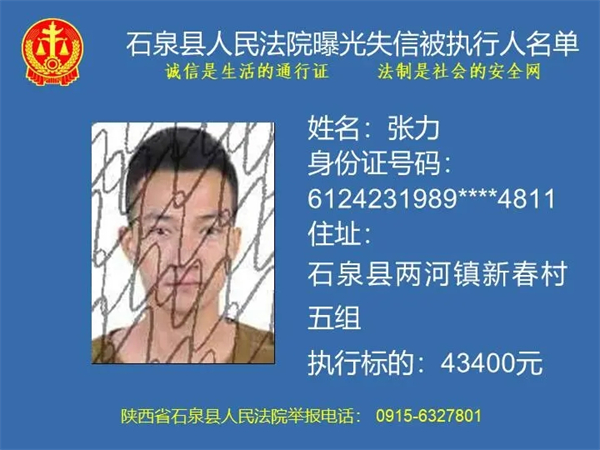 為了進(jìn)一步加大執(zhí)行力度,保障勝訴當(dāng)事人的合法權(quán)益,推進(jìn)社會(huì)誠(chéng)信體系建設(shè),依照《中華人民共和國(guó)民事訴訟法》《最高人民法院關(guān)于公布失信被執(zhí)行人名單信息的若干規(guī)定》等法律、司法解釋的有關(guān)規(guī)定,現(xiàn)對(duì)一批已進(jìn)入執(zhí)行程序,且尚未全部履行義務(wù)的被執(zhí)行人進(jìn)行媒體曝光,歡迎廣大群眾支持石泉縣人民法院的工作,向我院提供被執(zhí)行人的財(cái)產(chǎn)線索,使生效法律文書能夠得到切實(shí)執(zhí)行,讓人民群眾切實(shí)感受到公平正義就在身邊。