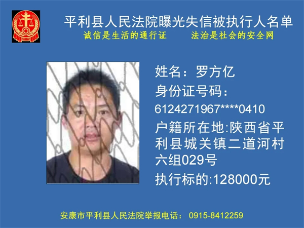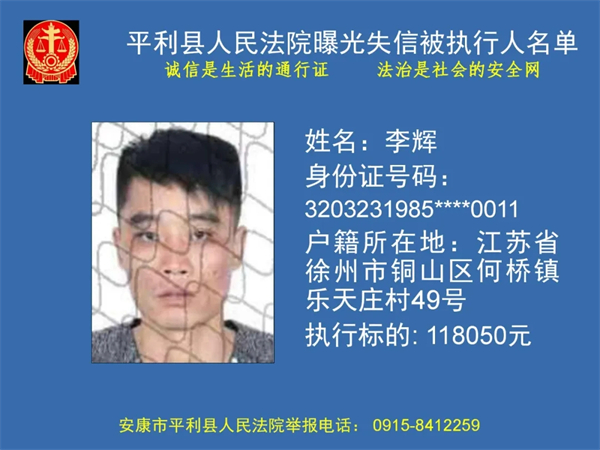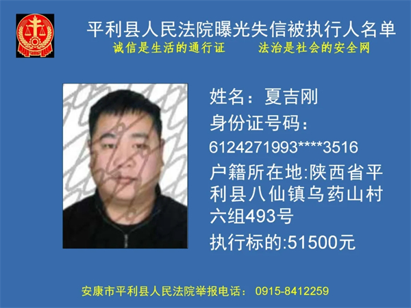 曝光失信 | 平利縣人民法院曝光失信被執(zhí)行人名單(2024年第一季度)