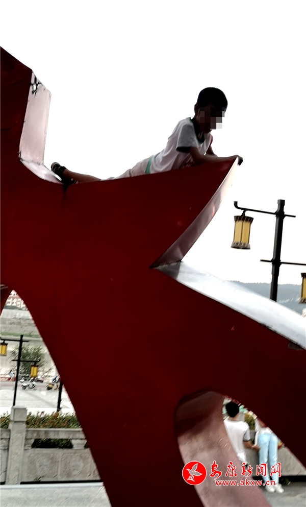 小孩攀爬漢調(diào)二黃園雕塑無人管