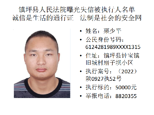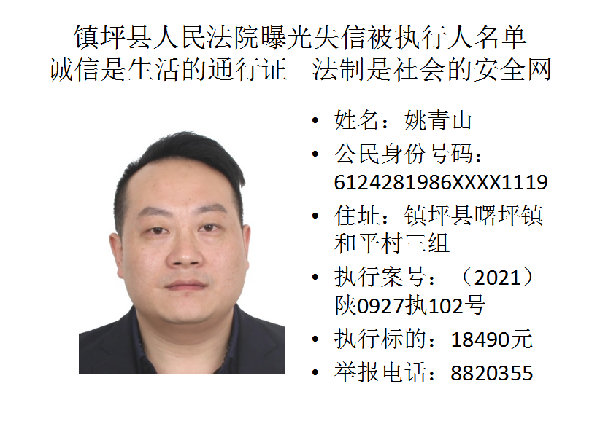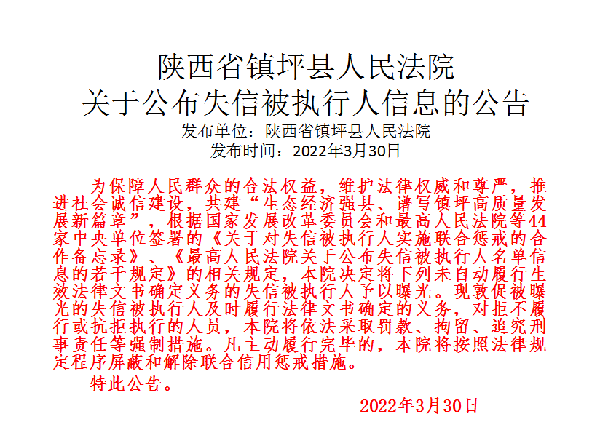 曝光失信 | 鎮(zhèn)坪法院2022年第一期失信人員名單公布