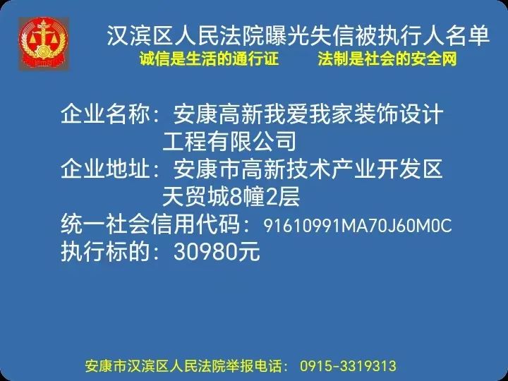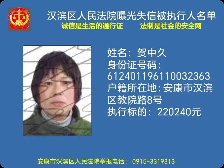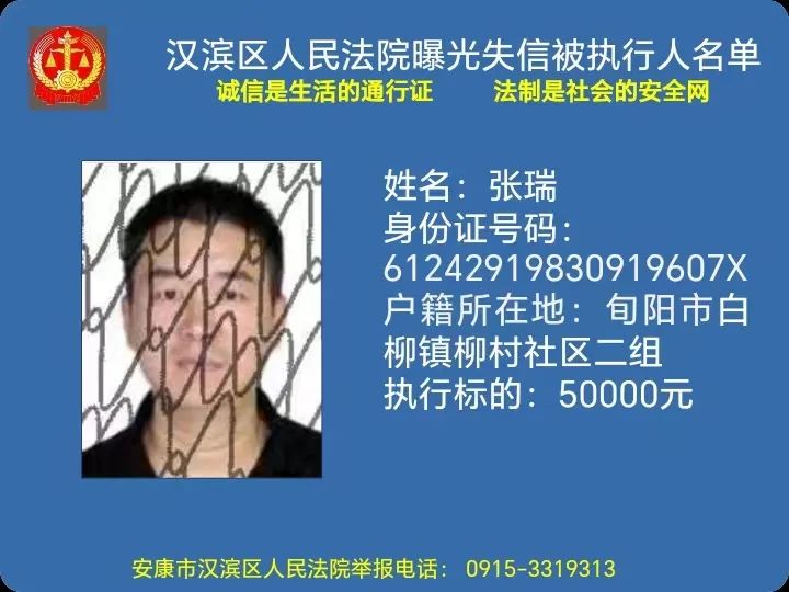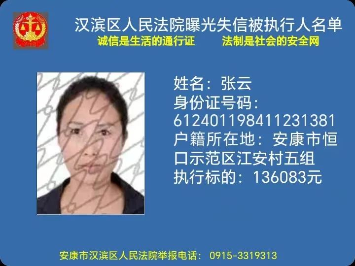 曝光失信 | 安康市漢濱區(qū)人民法院失信被執(zhí)行人曝光名單(2023年第5期)