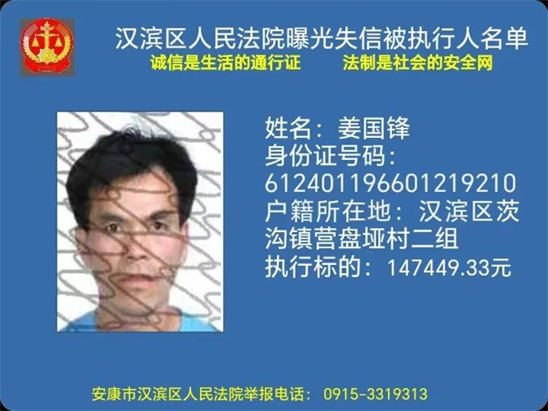 曝光失信 | 安康市漢濱區(qū)人民法院失信被執(zhí)行人曝光名單(2023年第6期)