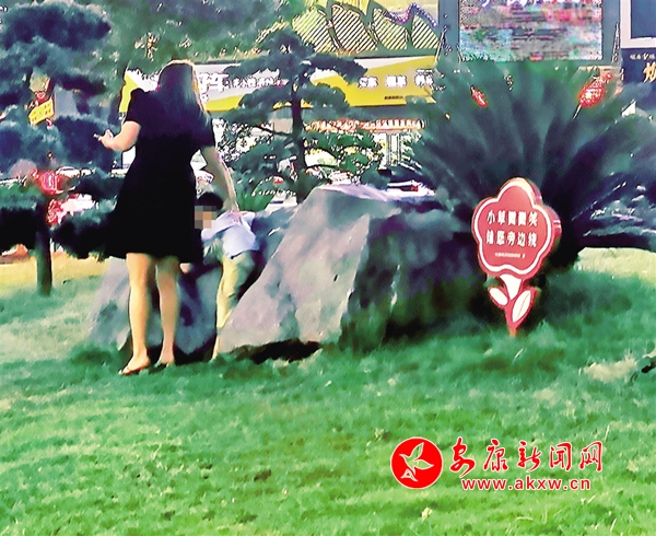 6月18日,有市民帶著孩子在安康城區(qū)西津漢江大橋(三橋)南頭街心綠地內(nèi)玩耍,旁邊就是“小草微微笑 請您旁邊繞”的公益廣告牌(圖1)。不時(shí)還有摩托車、電動(dòng)車從人行……