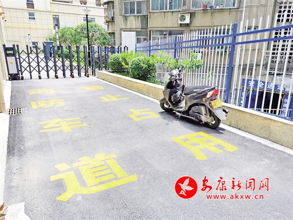 6月22日,安康城區(qū)江北江華公司消防通道被摩托車占用(圖1),這一區(qū)域的人行道盲道也被各種車輛侵占(圖2),存在安全隱患。(記者 潘潤生 攝)……