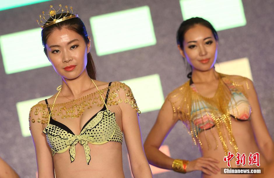靚麗的模特、耀眼的黃金內(nèi)衣……8月6日晚,一場以黃金為主題的時(shí)尚秀在南京國際會議中心上演,輪番登場的模特精彩演繹紫金愛濤珠寶所帶來的獨(dú)特魅力,其中一款價(jià)值過百萬、用萬足金打造的內(nèi)衣更是令現(xiàn)場的觀眾過足了眼癮。 泱波 攝AZv安康新聞網(wǎng)