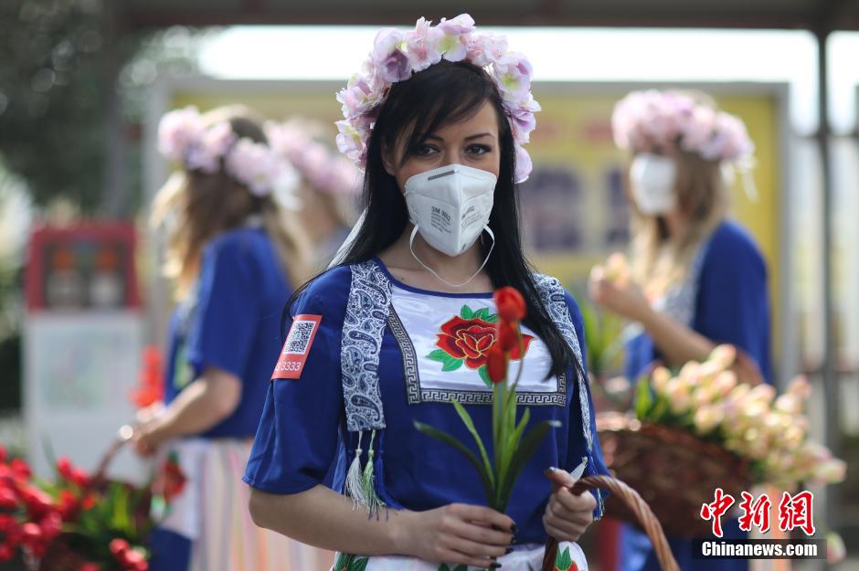 南京街頭靚麗“花仙子” 派發(fā)郁金香倡導(dǎo)綠色生活