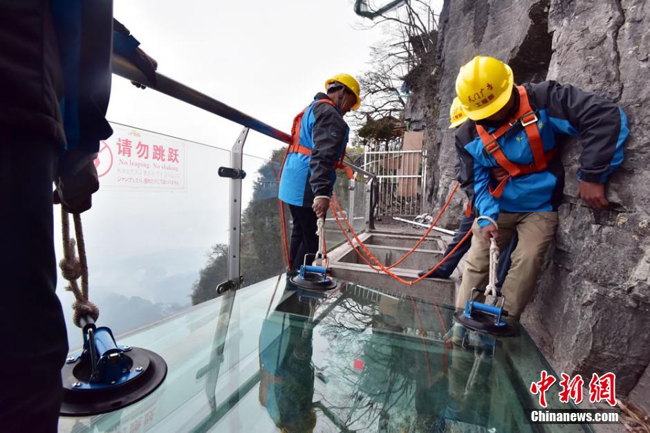 張家界天門山玻璃棧道換“新裝”