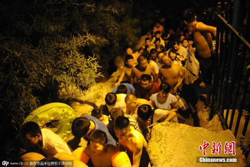 2015年07月28日,山東省濟(jì)南市,免費(fèi)泉水浴場(chǎng),吸引數(shù)百人在門(mén)外排“長(zhǎng)等待。場(chǎng)面十分壯觀。據(jù)了解,由于濟(jì)南持續(xù)高溫悶熱,這兩天泉水浴場(chǎng)迎來(lái)了今年以來(lái)的最高峰,每天人滿(mǎn)為患,大概日接客近千人。管理方表示,人數(shù)爆滿(mǎn)時(shí)會(huì)適度限制市民進(jìn)入。陳寧 攝 圖片來(lái)源:CFP視覺(jué)中國(guó)Z4L安康新聞網(wǎng)