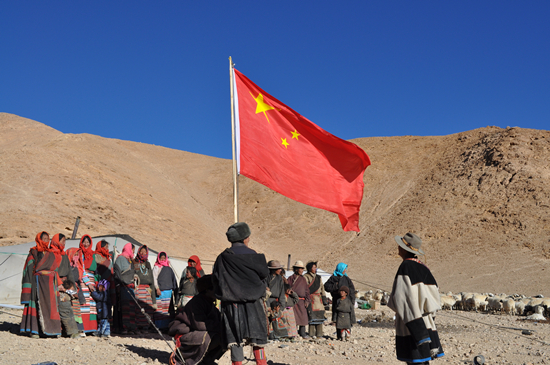 如果沒有詩人般的情懷,他怎么會驅(qū)車數(shù)百公里駐村蹲點,顛簸在戈壁荒漠之中,眼里看到的居然是藍天白云,五星紅旗,遙遠的雪山,赭色的巖石,飛奔的野驢,箭馳的藏羚羊。