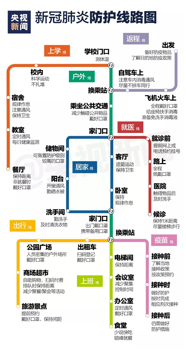 開學臨近,疫情防控又到了關鍵時期,返程路上、校園里、外出途中該如何做好防護?這張“線路圖”給你答案。