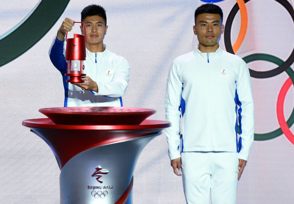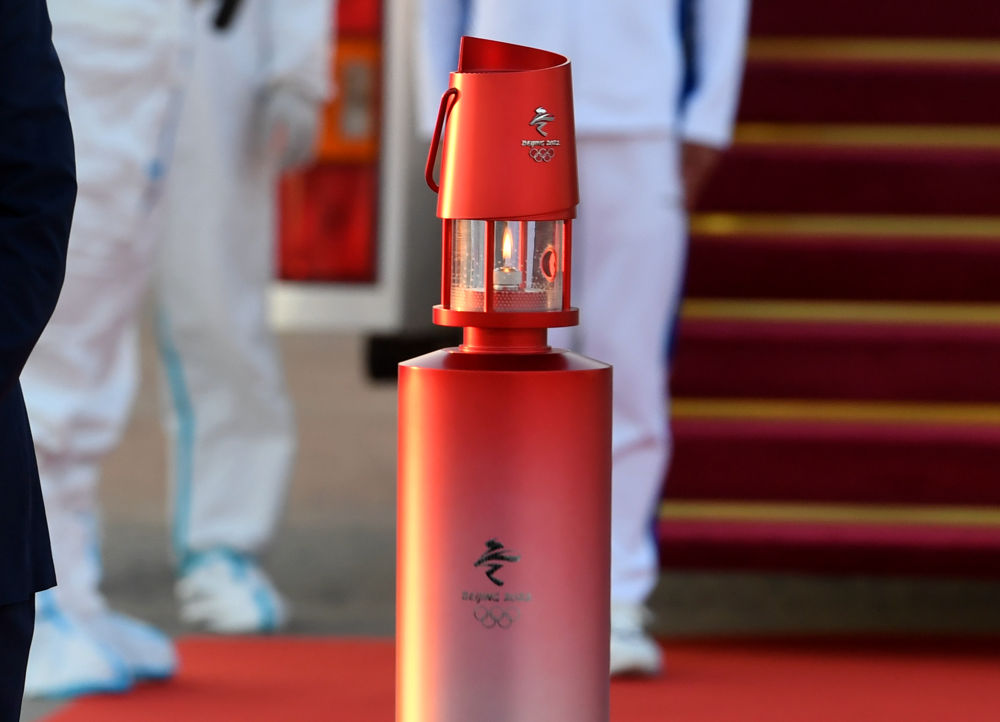 ⬆️護(hù)衛(wèi)人員在火種歡迎儀式現(xiàn)場展示北京冬奧會火種燈。 ban安康新聞網(wǎng)