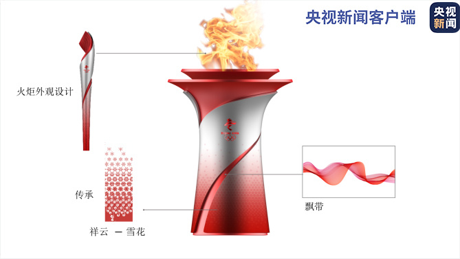 北京冬奧會(huì)儀式火種臺(tái)以“承天載物”為設(shè)計(jì)理念,創(chuàng)意靈感來自中國傳統(tǒng)青銅禮器——尊,造型風(fēng)格與火炬、火種燈和諧一致。儀式火種臺(tái)采用了尊的曲線造型,基座沉穩(wěn),象征“地載萬物”。頂部舒展開闊,寓意著迎接純潔的奧林匹克火種。祥云紋路由下而上漸化為雪花,象征了“雙奧之城”的精神傳承。紅色絲帶飄逸飛舞、環(huán)繞向上,與火炬設(shè)計(jì)和諧統(tǒng)一。紅銀交映的色彩,象征了傳統(tǒng)與現(xiàn)代、科技與激情的融合。