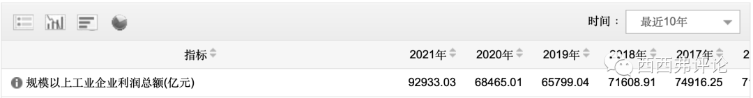 有不好的,也有好的。2021年,規(guī)模以上工業(yè)企業(yè)利潤(rùn)總額,同比增長(zhǎng)超過(guò)30%,從6.8萬(wàn)億,增長(zhǎng)到9.3萬(wàn)億。2022年1-10月,雖然同比有所下降,但也遠(yuǎn)高于2019年1-10月水平。