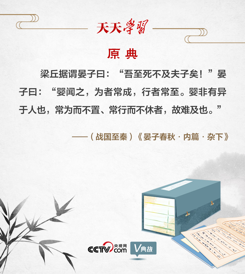 “為者常成,行者常至”,出自春秋時期齊相晏子與大夫梁丘據(jù)的一段對話。梁丘據(jù)與晏子既是朋友,也是政治對手。一次,他對晏子說:“我恐怕到死也趕不上先生您了!”晏子說:“我聽說,努力去做的人通?梢猿晒Γ痪肭靶械娜顺3?梢缘竭_目的地。我和別人比并沒有什么不同,只是經(jīng)常做個不停、走個不停罷了,所以很難被趕上。”