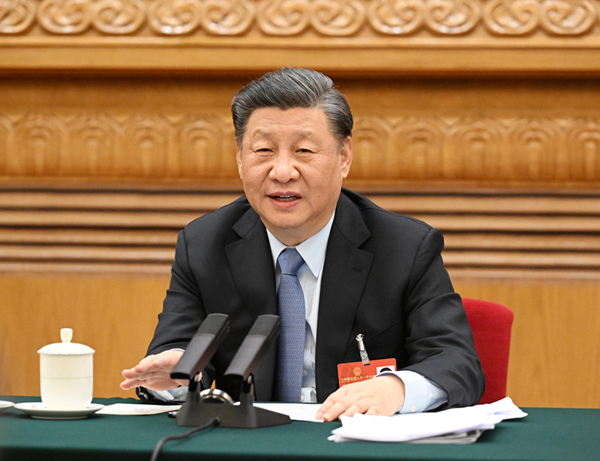 3月5日,中共中央總書記、國(guó)家主席、中央軍委主席習(xí)近平參加他所在的十四屆全國(guó)人大一次會(huì)議江蘇代表團(tuán)審議。新華社記者 黃敬文 攝
