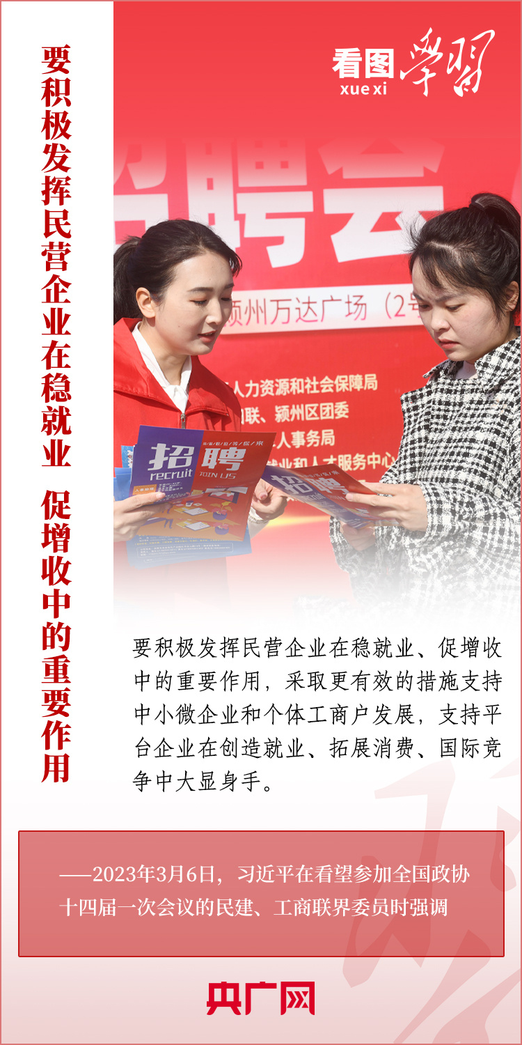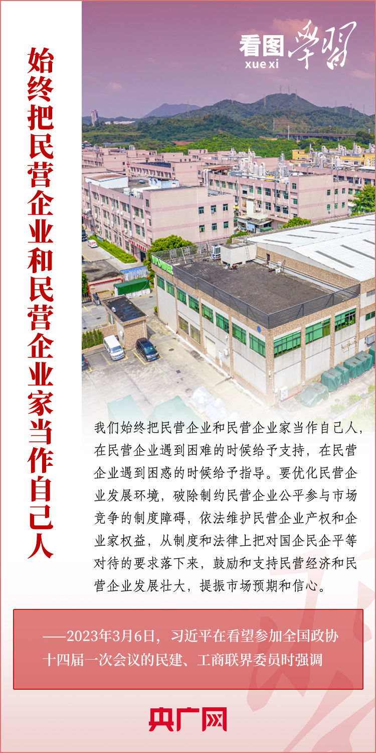 3月6日下午,習(xí)近平總書記看望參加全國政協(xié)十四屆一次會(huì)議的民建、工商聯(lián)界委員,并參加聯(lián)組會(huì),聽取意見和建議?倳洀(qiáng)調(diào),黨中央始終堅(jiān)持“兩個(gè)毫不動(dòng)搖”“三個(gè)沒有變”,始終把民營企業(yè)和民營企業(yè)家當(dāng)作自己人。要引導(dǎo)民營企業(yè)和民營企業(yè)家正確理解黨中央方針政策,增強(qiáng)信心、輕裝上陣、大膽發(fā)展,實(shí)現(xiàn)民營經(jīng)濟(jì)健康發(fā)展、高質(zhì)量發(fā)展。一起來學(xué)習(xí)!