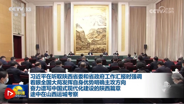 5月17日,習(xí)近平在西安主持中國-中亞峰會(huì)前夕,專門聽取陜西省委和省政府工作匯報(bào),省委書記趙一德匯報(bào),省長趙剛等參加匯報(bào)會(huì)。習(xí)近平發(fā)表了重要講話,對(duì)陜西各項(xiàng)工作取得的成績給予肯定。