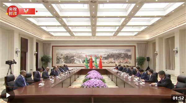 習(xí)近平指出,歡迎總統(tǒng)先生來(lái)華出席成都大運(yùn)會(huì)開幕式。去年年底,我同總統(tǒng)先生在沙特利雅得共同出席首屆中國(guó)-阿拉伯國(guó)家峰會(huì)并舉行會(huì)晤,達(dá)成許多重要共識(shí),為中毛關(guān)系發(fā)展指明了方向。這是你就任總統(tǒng)以來(lái)首次訪華,相信這次會(huì)晤將為兩國(guó)關(guān)系未來(lái)發(fā)展擘畫新藍(lán)圖。