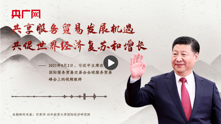 這段話出自2021年9月2日習近平主席在中國國際服務貿(mào)易交易會全球服務貿(mào)易峰會上的視頻致辭。
